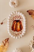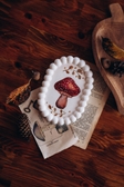 Авторська декоративна підставка ручної роботи, виготовлена з гіпсу. Має ніжну округлу форму з рельєфними «намистинками» по краю, які надають їй виразного об'єму та фактури. В центрі — ручний розпис.