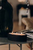 Велика декоративна свічка у кашпо з обпаленого дерева, спеціально обробленому для безпечного використання (не загоряється).