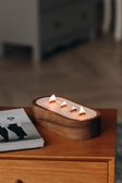 Велика декоративна свічка у кашпо з горіха, спеціально обробленому для безпечного використання (не загоряється). Мінімалістична форма, три гноти та зручна дерев’яна кришка роблять її не лише атмосферним акцентом у домі, а й практичним елементом інтер’єру.
